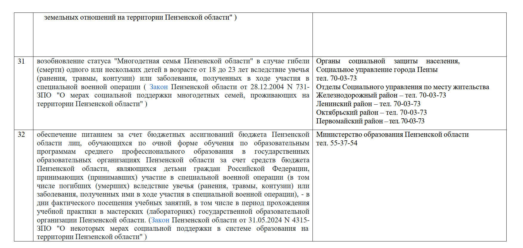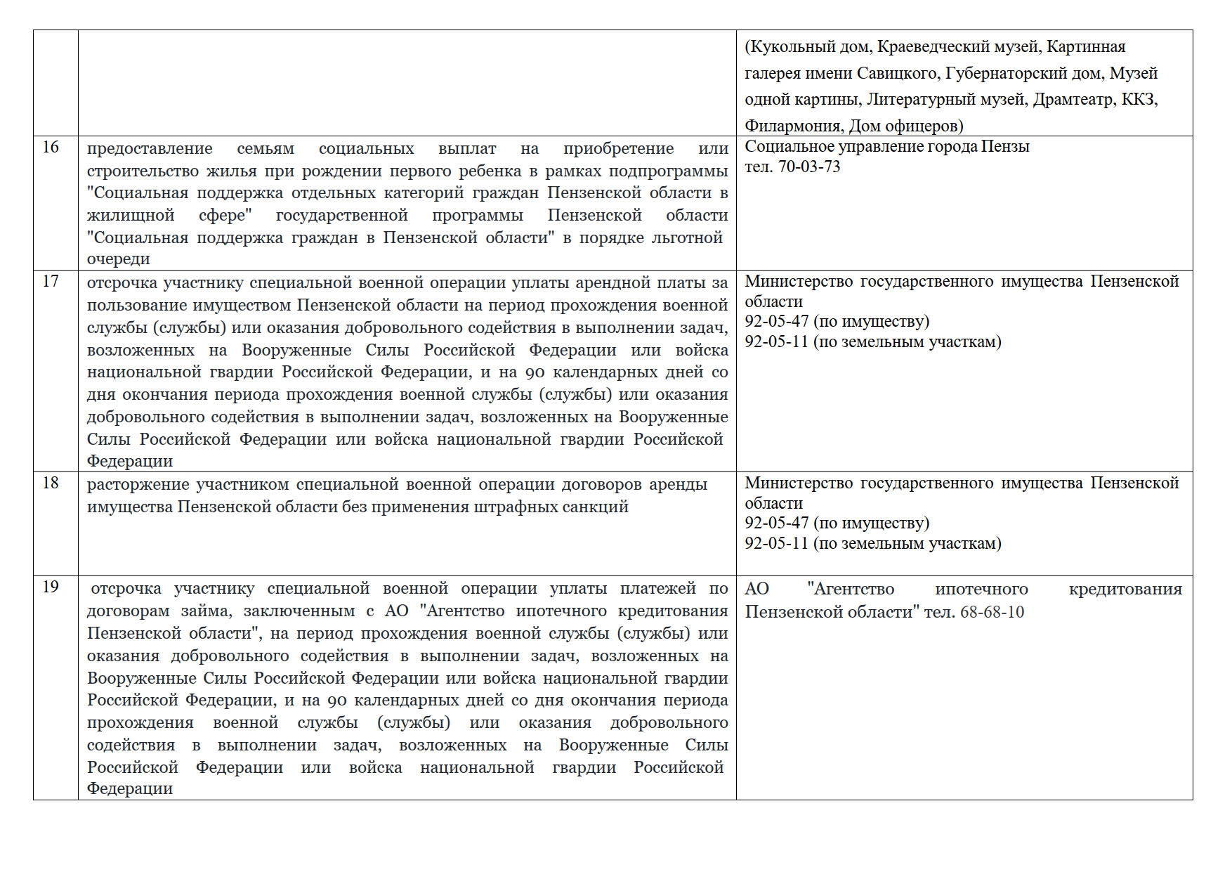 - оказание организациями социального обслуживания бесплатных социальных услуг в форме социального обслуживания на дому, в стационарной или полустационарной форме супругам и родителям участников специальной военной операции из числа инвалидов, признанных нуждающимися в социальном обслуживании, независимо от состава семьи и без учета уровня доходов семьи;